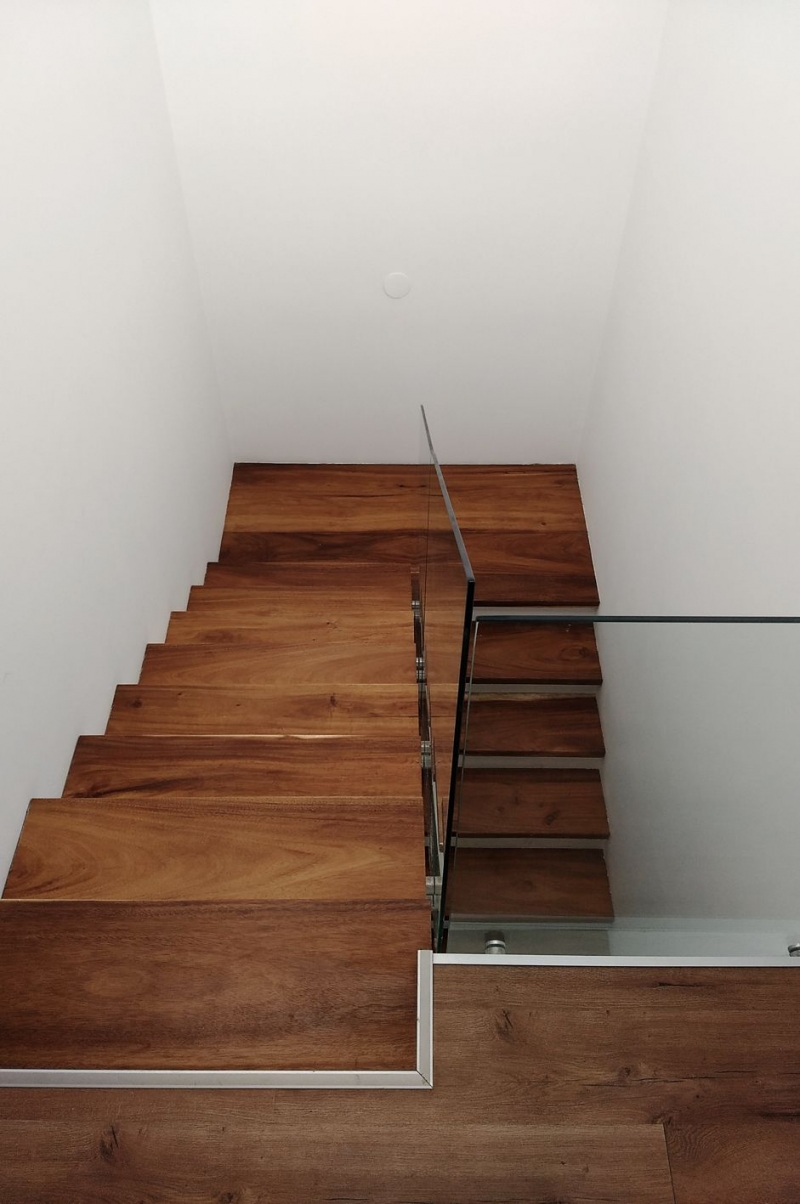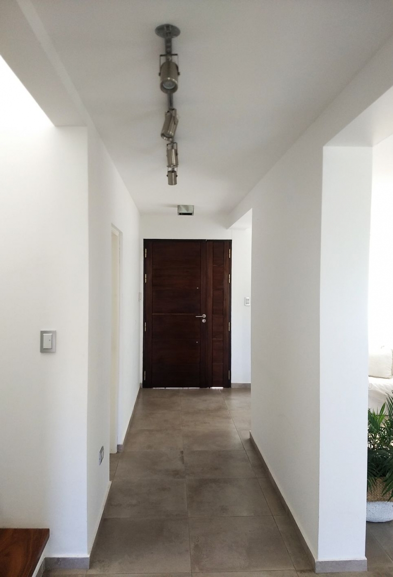 Con retiro obligatorio sobre un lateral y un ancho acotado del lote, la orientación Norte, la más favorable para nuestro hemisferio, quedó sobre un lateral. Pero esto no fue un impedimento al momento de captar la luz solar, ayudados por el blanco de las paredes, este elemento se encuentra presente en toda la casa.